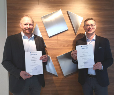 Vorstandsmitglieder der Tischler-Innung Steinfurt erhalten die Urkunde TOP-Ausbildungsbetrieb