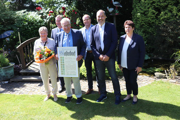 Anlässlich des 90-jährigen Betriebsjubiläums der Theodor Schemberg Einrichtungen GmbH hat sich HGF Frank Tischner mit einer Urkunde im Gepäck gerne auf den Weg nach Mettingen gemacht. Frank Tischner bedankte sich bei Anne und Carsten Schemberg…